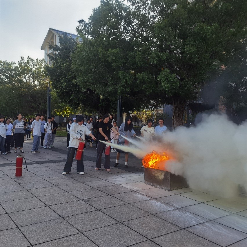 随后,王楠楠副书记向全体师生解读消防演练的目的、意义。消防科科长雷良灿向在场人员详细介绍了灭火器的使用原理以及相关的注意事项。并亲自演练了灭火器的使用方法;在认真听讲及观摩后,部分教师和员工亲自体验了现场灭火的过程,面对熊熊燃烧的火堆,教师和员工们表现得十分沉着,熟练地按照灭火的步骤和方法,将汽油燃起的浓烟大火成功的迅速扑灭。灭火演练结束后,郭正武副主任给大家做了本次演练到总结。