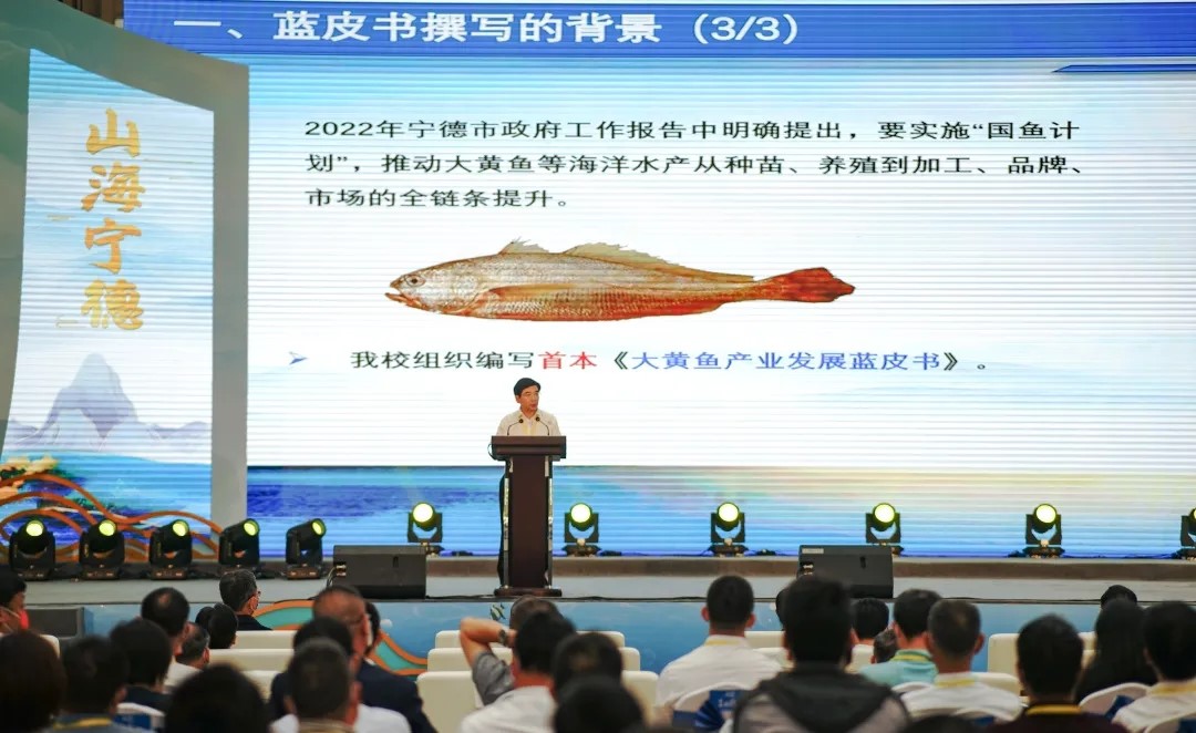 11月19日-20日,为助力“国鱼计划”实施,提升大黄鱼产业全链条深度发展,宁德市委市政府隆重举办第六届中国(宁德)大黄鱼文化节。福建省政府副省长林文斌、自然资源部东海分局副局长袁绍宏、中国渔业协会会长赵兴武、中国水产流通与加工协会会长崔和以及省政府办公厅、省海洋渔业局、省商务厅、市委市政府及各组成部门领导、市人大、市政协、各沿海县市主要领导以及来自国内知名的行业专家学者、行业协会、客商及重点涉渔企业代表等300多人出席本次活动,公司独立编撰完成的全国首部《大黄鱼产业发展蓝皮书》亮相本次盛会。董事长魏远竹教授应邀参加了本次大黄鱼文化节开幕式。