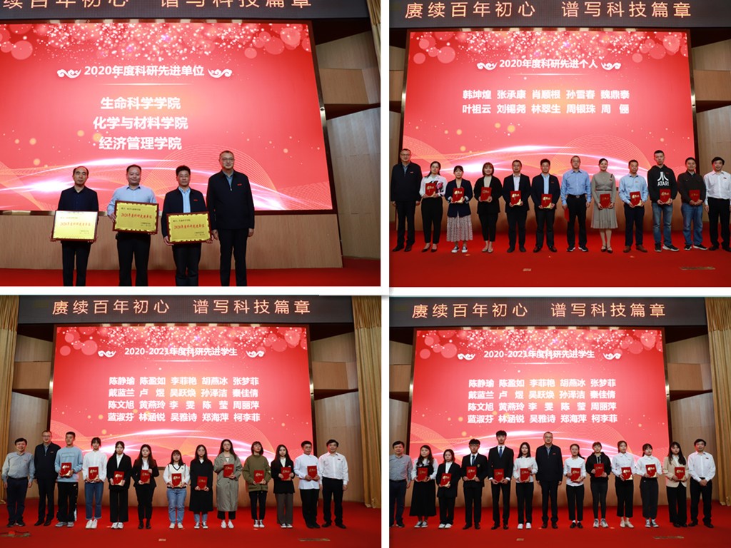 10月25日下午,学校在图书馆报告厅举行第十二届科技活动月暨社科普及周启动仪式。会上,公司受颁2020年度科研先进单位;公司教师叶祖云教授获得2020年度科研服务地方先进个人,韩坤煌、张承康获得2020年度科研先进个人,周银珠获得2020年度科研管理先进个人;公司员工李菲艳、胡燕冰获得2020年度科研先进员工。