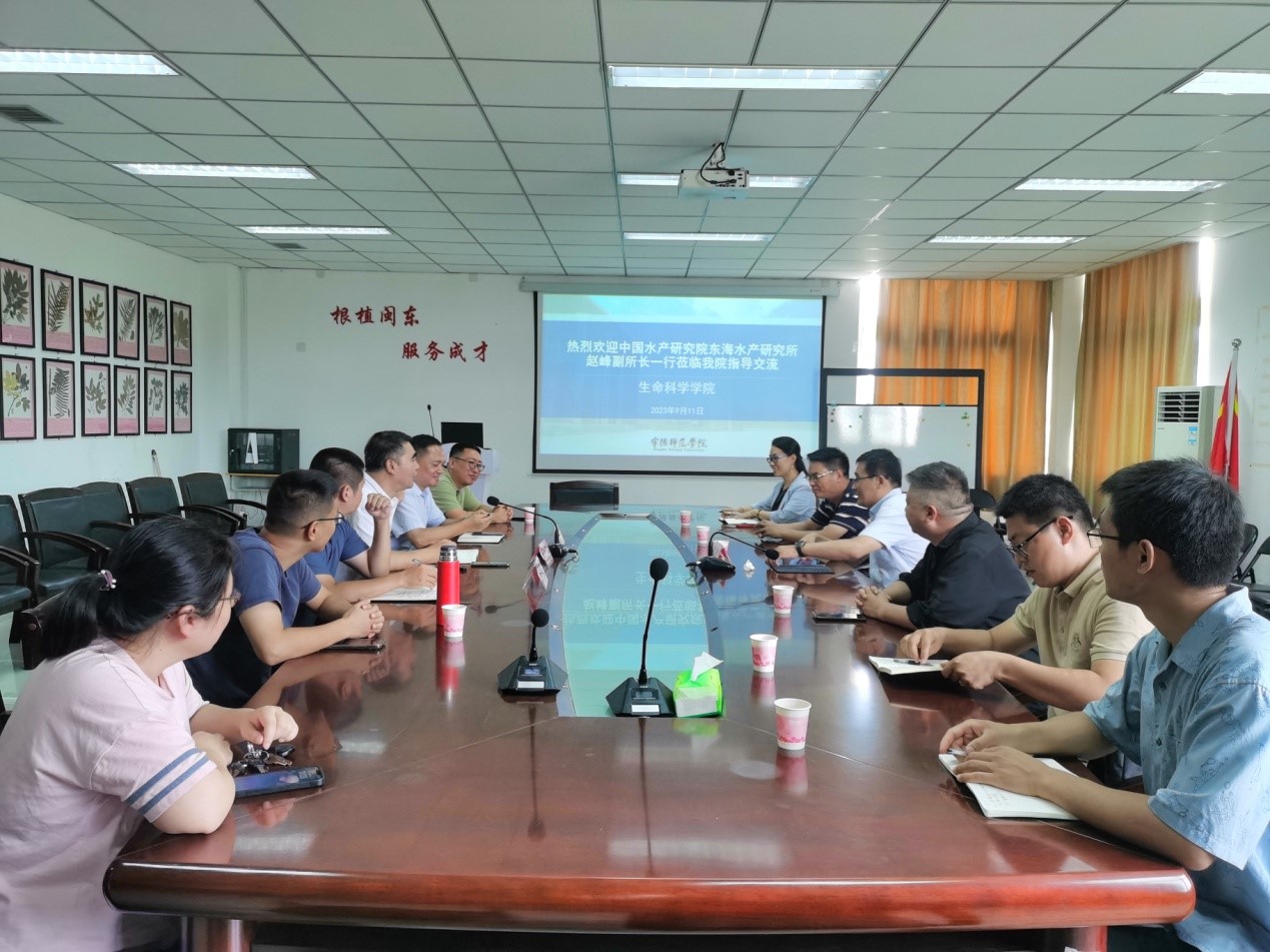 随后,赵峰副所长一行前往生命科学学院进行深入座谈交流。生命科学学院经理阮少江、党委书记张秋良、党委副书记王楠楠及海洋资源开发技术系、食品科学与工程系等教师代表参加座谈会。座谈会上,阮少江经理简要介绍学院发展情况,双方围绕海洋渔业振兴学院共建,在员工实习实训、考研深造、服务地方等方面进行了深入的交流与经验分享。