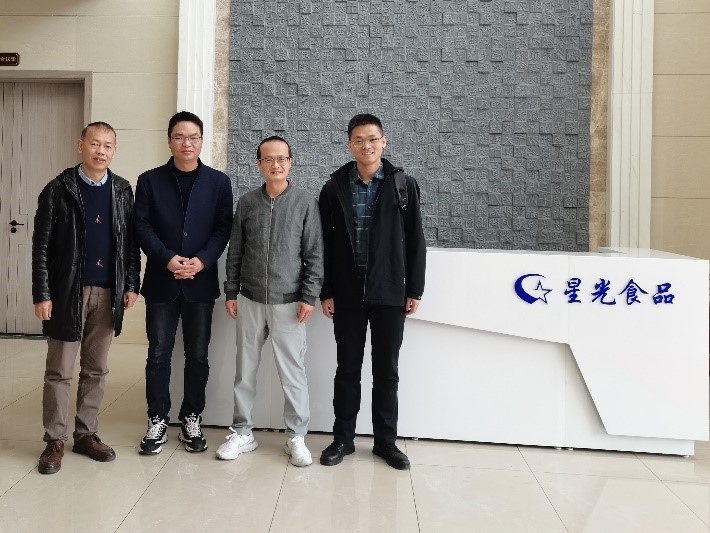 公司教授郭全友与宁德市星光食品有限公司执行董事陈银平交流学习出口贸易及生产过程中出现的问题,郭全友教授为企业生产出现的问题提出宝贵的意见。