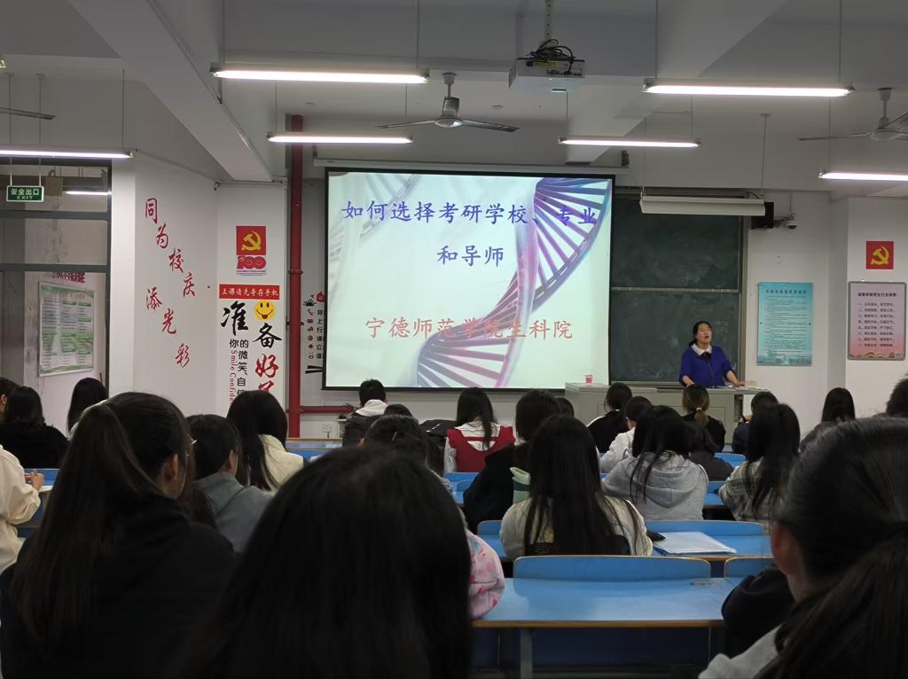 讲座前,生物技术系主任陈美霞分析了近年公司与福州大学、福建师范大学以及福建农林大学的联培政策,为考研的同学指明另一条通道。