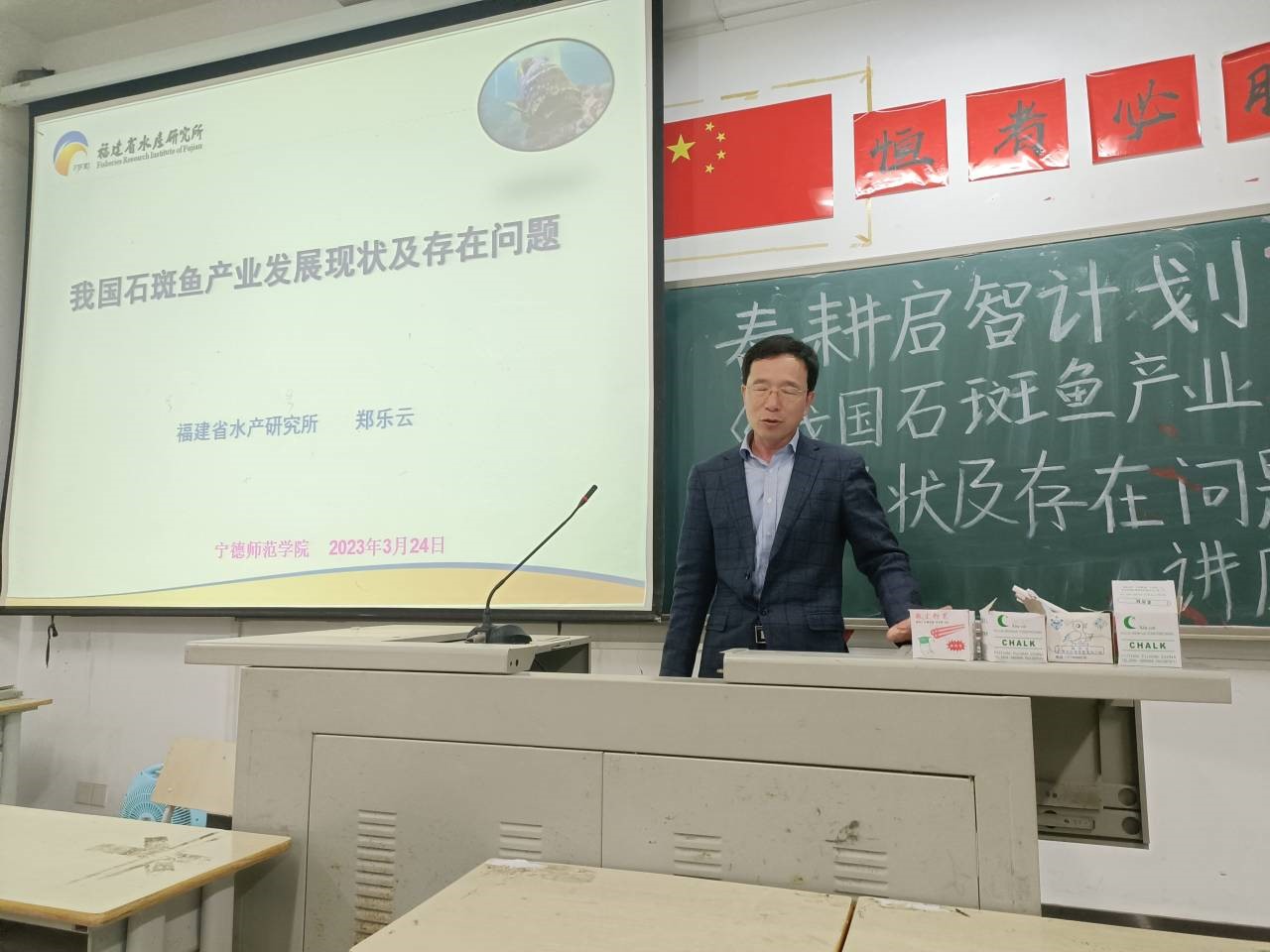3月24日下午,福建省石斑鱼种业创新和产业化工程首席专家、福建省水产研究所海洋生物遗传育种研究中心副主任郑乐云教授级高级工程师莅临公司,为公司师生作了一场题为《我国石斑鱼产业发展现状及存在问题》的精彩报告。此次报告由公司海洋系主任韩坤煌博士主持,讲座吸引了公司100多位海洋学科师生参加。