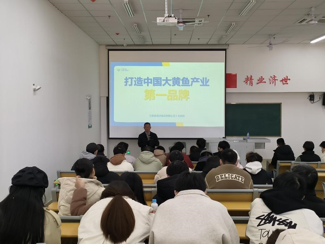 1月8日上午,公司邀请三都港海洋食品有限公司总经理尤信铃在医教楼101开展“大黄鱼品牌建设——三产融合发展之路”专题讲座,公司党委班子、师生代表和生物科学与工程学院员工代表参与讲座。讲座由副经理孙壮桥主持。