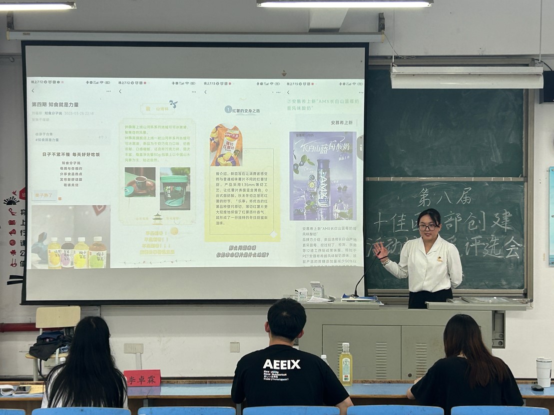 在评选过程中,各团支部通过精彩的演讲、生动的 PPT 展示,全方位地呈现了他们在思想引领、组织建设、志愿服务、校园文化活动等方面所取得的显著成绩。在展示过程中,有的团支部讲述了他们积极开展主题团日活动,提升团员思想素质的努力;有的展示了在各类社会实践中团员们的热情奉献和责任担当,展现了团支部的活力与凝聚力。评委们根据各团支部的综合表现进行了认真细致的评选,最终评选出了一、二、三等奖分别为:食品(闽台)23(1)班、食品23(1)班、食品22(1)班。最后由院团委书记林维杰指出各团支部不足和改进方法。