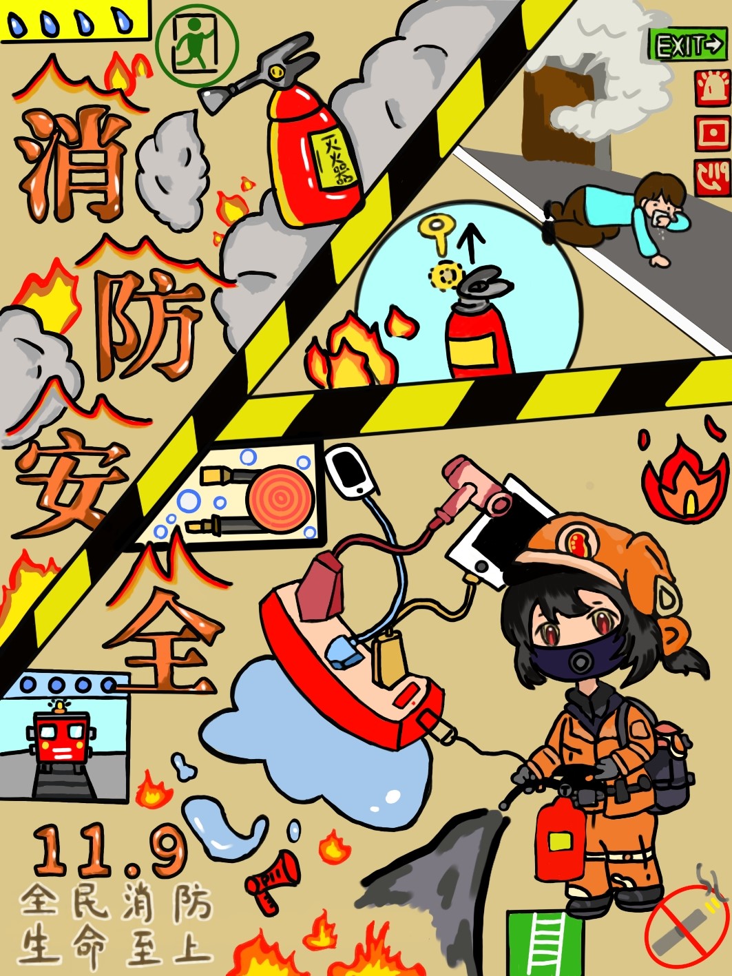 为增强全民消防安全意识,提升社会火灾防控能力,丰富校园生活,公司于2024年11月18日至11月23日举办了以“全民消防,生命至上” 为主题的海报设计比赛。