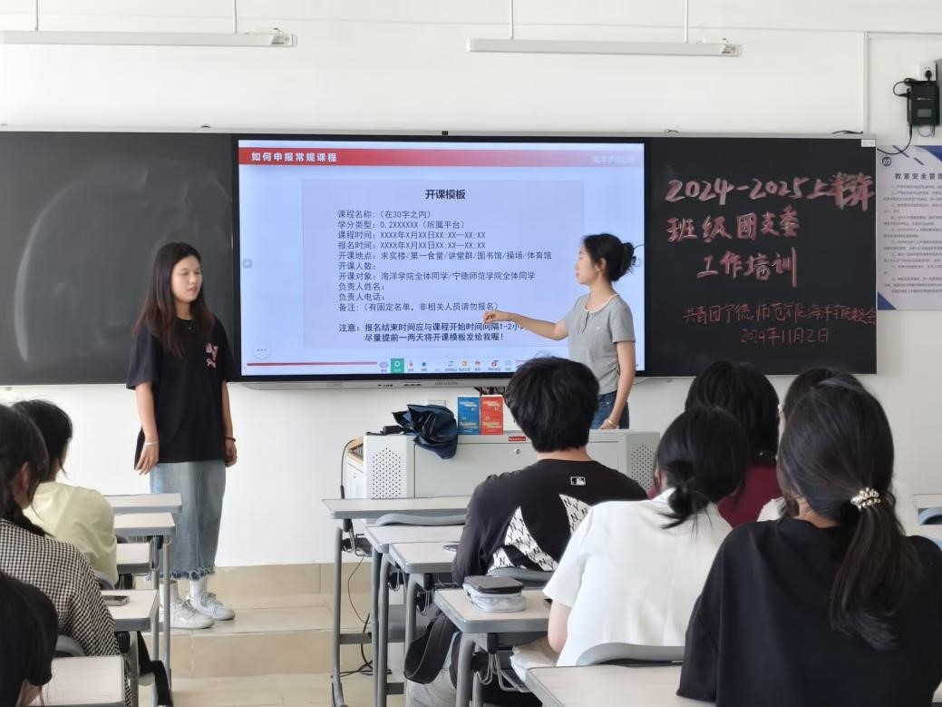 培训过程中,团委青年发展部庞芝勇围绕团日活动的组织策划、智慧团建系统的实践应用等方面,进行了全面、深入的剖析与讲解,着重强调了团日活动在强化班级凝聚力、提升团员思想政治素质方面的核心价值与重要意义。在此之后,团委其它部门也进行了生动、详实的培训分享。他们通过丰富的案例与实用的建议,为新生团支委们描绘了一幅幅清晰、具体的工作蓝图,为他们未来的工作指明了方向。