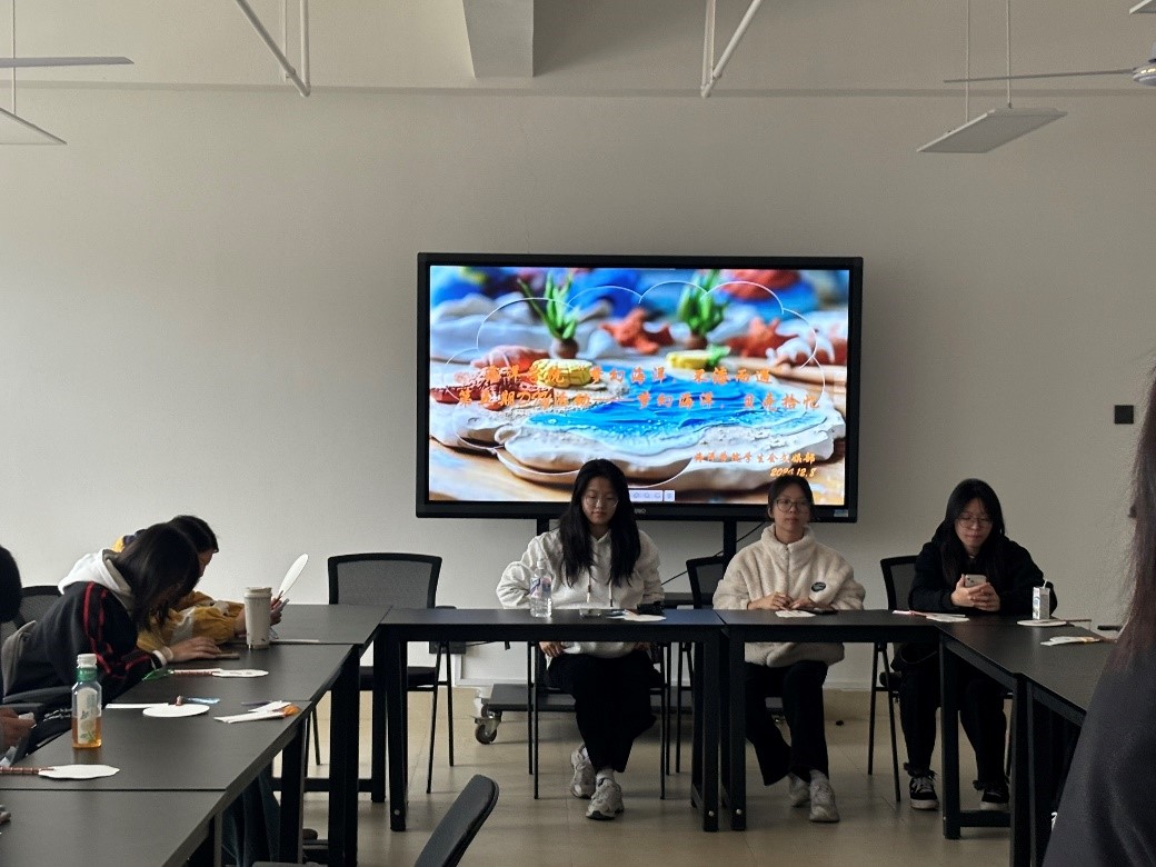 活动开始,工作人员向在场同学们演示了漆扇的制作方法,细心指导同学们一些制作的小技巧。同时,工作人员准备了一个个小巧精致的书签,形状各异的漆扇,以及一旁等着的漆桶和颜料。待工作人员细心指导完后,同学们满怀期待地开启了漆扇创作之旅。有的同学内心细腻,注重配色与图案的搭配;有的同学大胆创新,运用鲜艳夸张的色彩搭配;还有的同学技术高超,制作出奇妙的图案。活动现场气氛热烈而温馨,同学们相互交流创作灵感,彼此分享漆艺技巧,赞叹声与欢笑声交织在一起,充满了整个活动室。