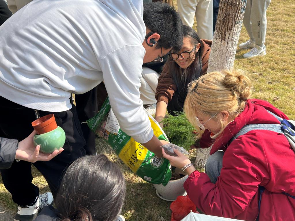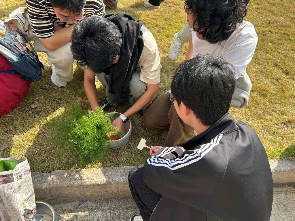 活动当日,阳光暖煦,微风不燥,正是植树好时节。参与者们满怀热忱,准时在best365中国官方网站院楼下集合。实践部的工作人员早已忙碌完毕,植树工具整齐排列,各类植物生机勃勃,静静等待着开启这场绿色之旅,现场氛围有序而热烈。本次活动精心购置了12株寓意美好的植物,涵盖了绣球、文竹等,每株植物由3 - 5人自由组队进行种植,大家迅速寻找队友,组建起“绿色小团队”,为即将开始的种植工作摩拳擦掌。植树活动正式开始,同学们默契配合,现场一派热火朝天的劳动景象。在劳作过程中,同学们还交流起植树技巧与环保心得,欢笑声、讨论声交织在一起,奏响了一曲欢快的春日劳动乐章。