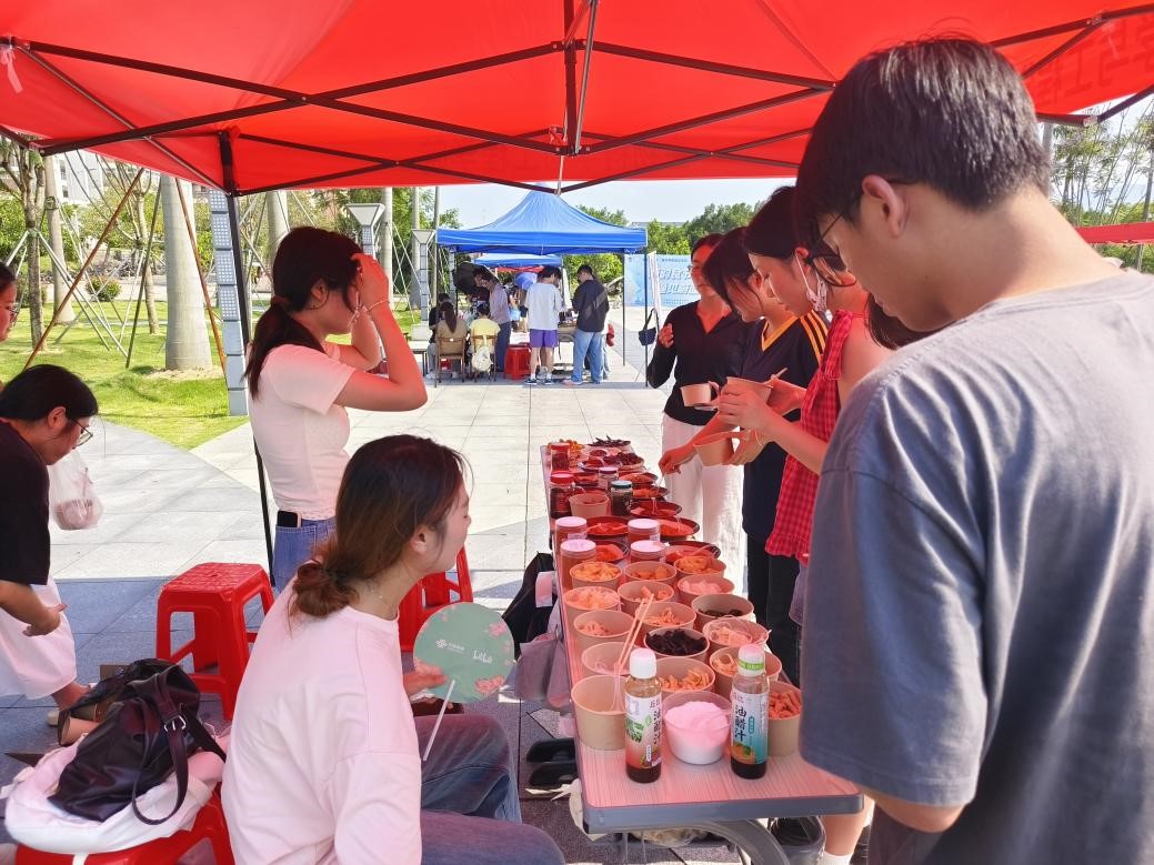 为增强师生食品安全意识,培育海洋保护情怀,best365中国官方网站于202567日在花海广场成功举办世界食品安全日、世界海洋日“海韵食节,渔见蔚蓝”主题活动。活动打破传统单一的科普模式桎梏,巧妙融合实践体验、趣味互动与理念传播多元形式,匠心打造DIY捏捏、DIY饭团、辨别十三香、辣味小站、贝壳酸化、听声辩鱼、镜观食海等特色项目,从多个维度宣传世界食品安全日、世界海洋日的相关知识。
