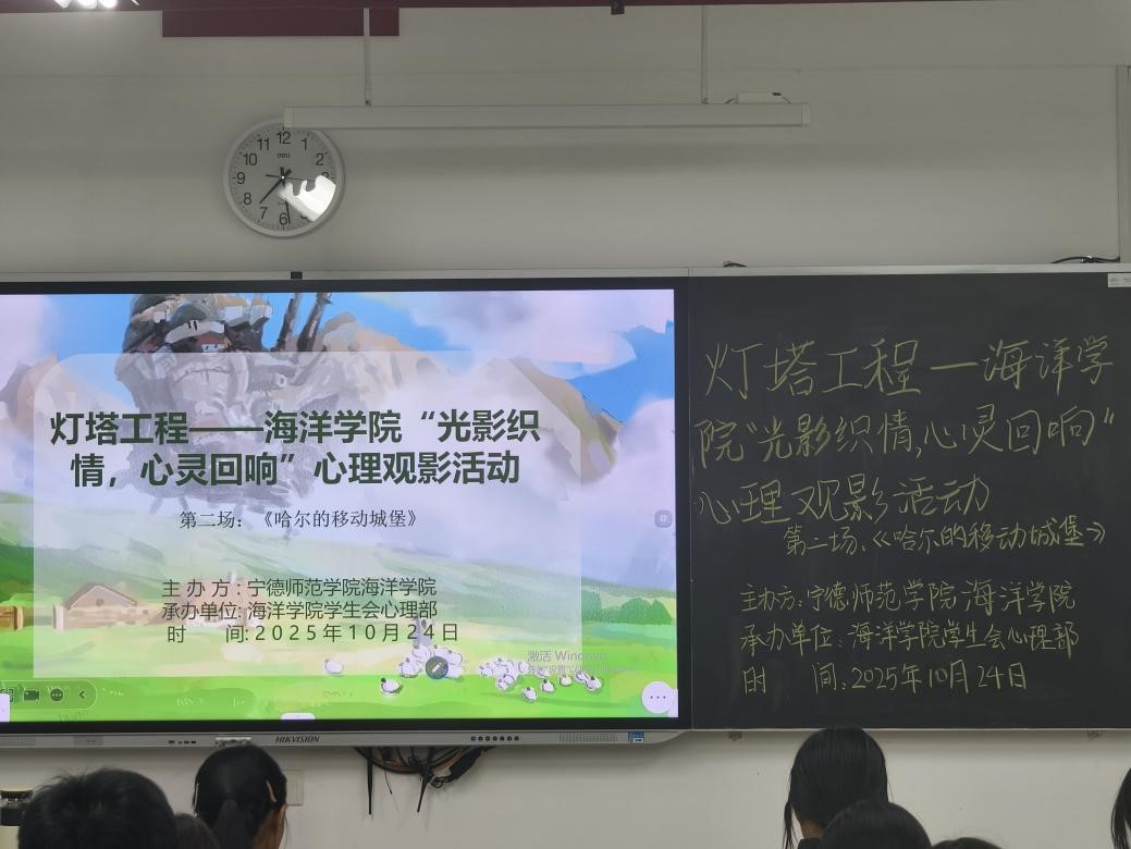 藉此2025年世界精神卫生日宣传教育契机,为丰富校园文化生活,拓展心理健康教育的形式与内涵,陶冶员工情操,best365中国官方网站于2025年10月24日在医教楼601举办了“观影织情,心灵回响”心理主题观影活动。本次活动精选世界著名动画大师宫崎骏执导的经典影片——《哈尔的移动城堡》,意在借助影片中温暖而富有哲思的叙事,引导同学们体悟勇气、爱与自我成长的深刻意义。