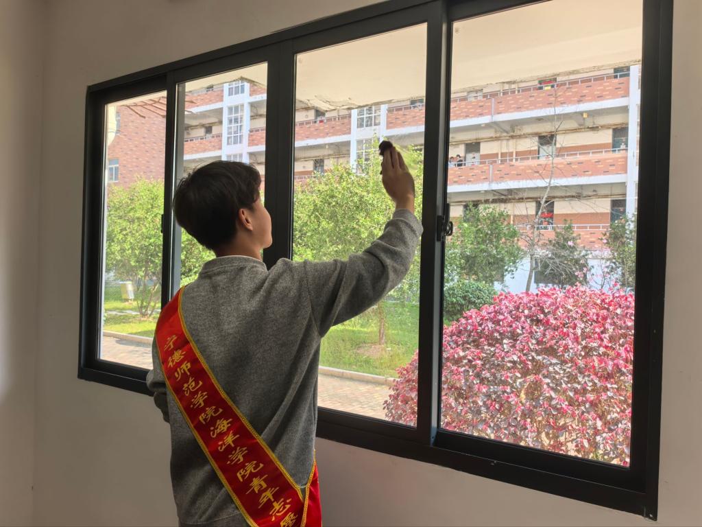 第二期“雷锋精神引领,净美校园同行”“一站式”园区清扫行动于3月17日下午有序开展。院团委志愿服务部联合员工会实践部,面向学院招募志愿者,对“一站式”第一园区进行全面清扫与整理。志愿者们分工协作、有条不紊,有的清扫地面,有的擦拭桌椅,有的清理玻璃窗台,以实际行动让园区焕然一新。同学们在躬身力行中感受劳动教育,在集体协作中强化服务精神。