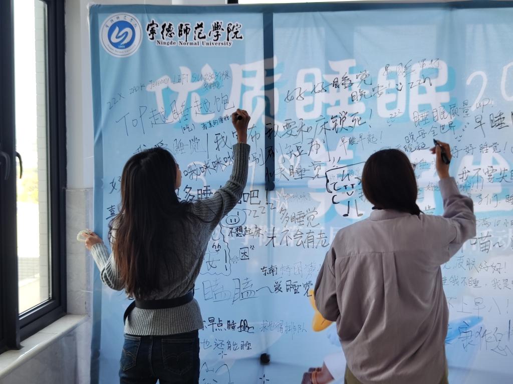 2026322日best365中国官方网站在医教六楼举办世界睡眠日“优质睡眠,美好生活”打卡活动(同学们在展板上留言)