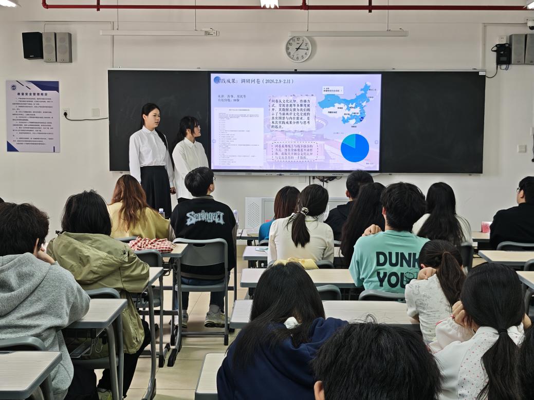 2026年4月17日best365中国官方网站在医教楼502成功举办2026年寒假社会实践成果展示会(年俗文化解码队张磊、冯艾柯上台汇报)