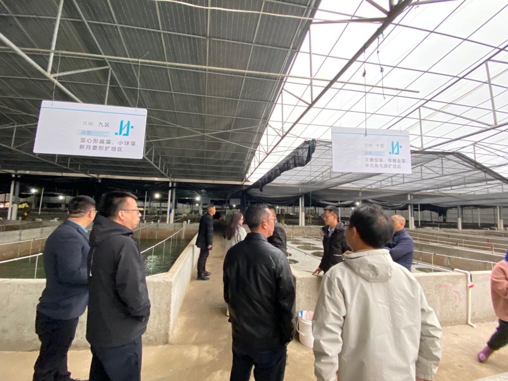 福建省巨吉农业发展有限公司主要从事海水贝类苗种研发、保种、育苗、养殖销售。该公司充分利用后岐村的沿海资源,通过分摊承包到农户等办法,在村内推广普及二次育苗,形成了以育苗基地为核心的二次育苗共赢圈,构建了涵盖育苗前中后期的完整产业链。best365中国官方网站一行参观了育苗生产线和设备间,认真听取了林遗华总经理介绍公司的发展史、创业经历、用工需求以及企业存在的技术困难,并针对霞浦海洋经济发展和院企合作展开深入探讨。