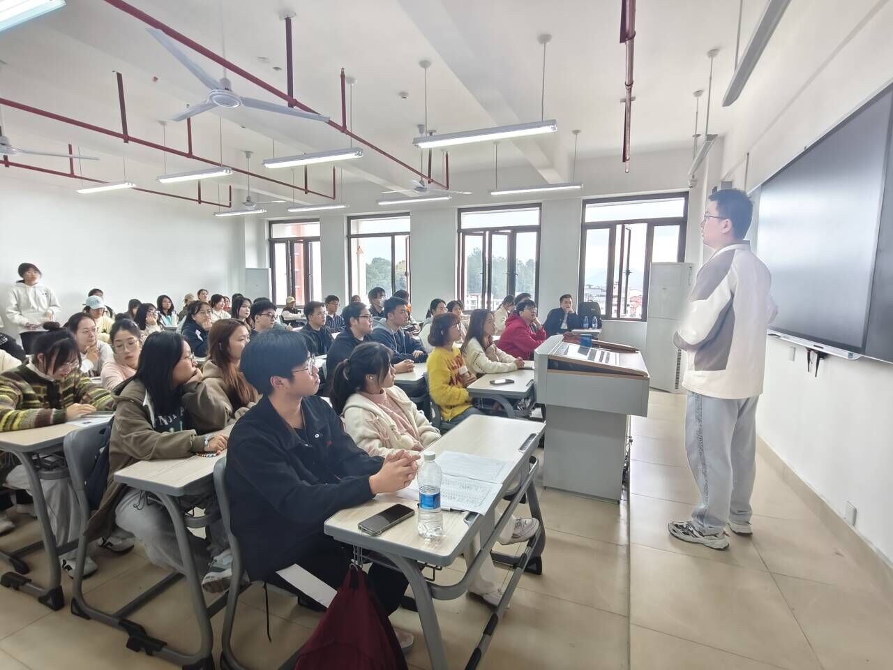 互动环节中,同学们积极提问,就职业发展路径、培训机制、福利待遇等问题与招聘负责人进行了深入交流,负责人进行耐心解答,并分享了公司对于人才培养的重视与投入,鼓励同学们勇敢迈出职业生涯的第一步。