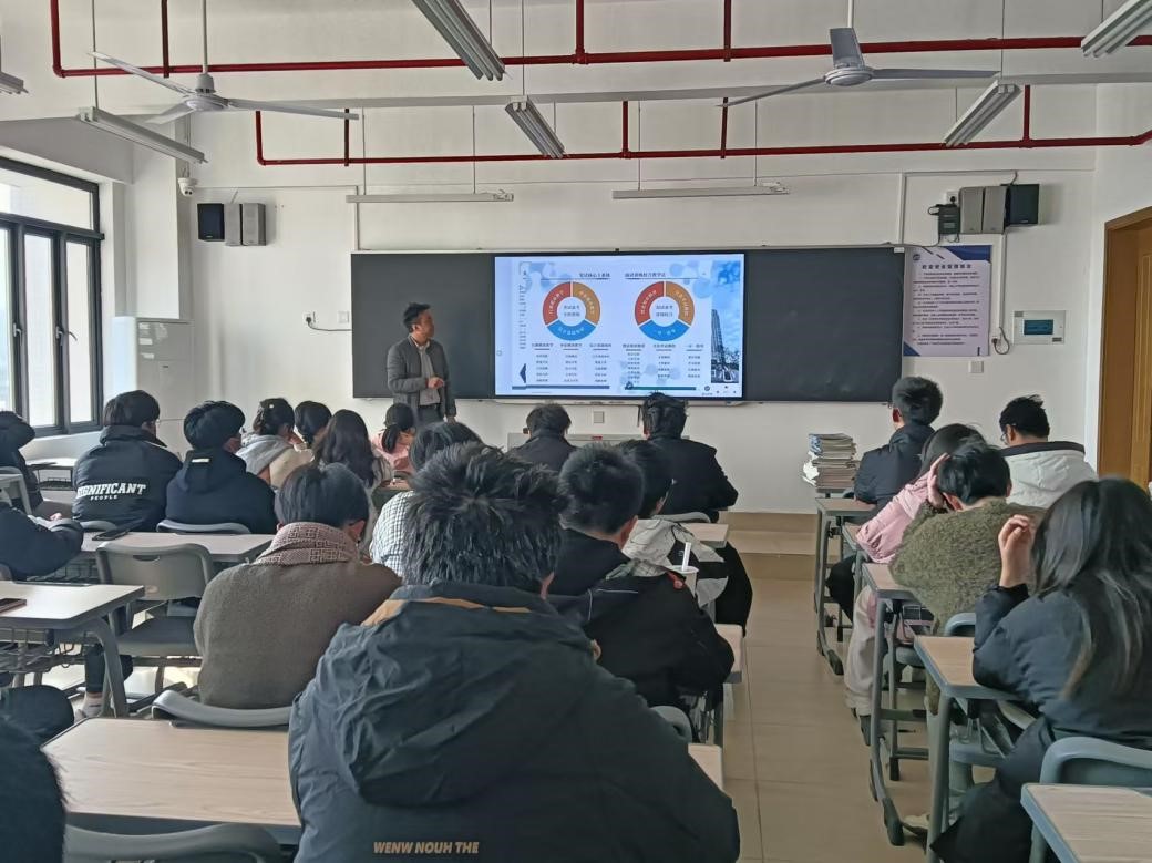 在宣讲会上,福建学昊教育科技有限公司宁德分校的负责人介绍了公司的规模、职业教育培训范围和相关的公职类考试辅导课程,展示了公司的教学资源和教学平台。详细讲解了公职类考试的报名流程、考试科目、题型特点以及备考策略等,特别强调备考过程中的知识积累、逻辑思维能力培养。通过讲解,同学们对福建学昊教育科技有限公司的情况和公职类备考的相关知识有更深的了解。