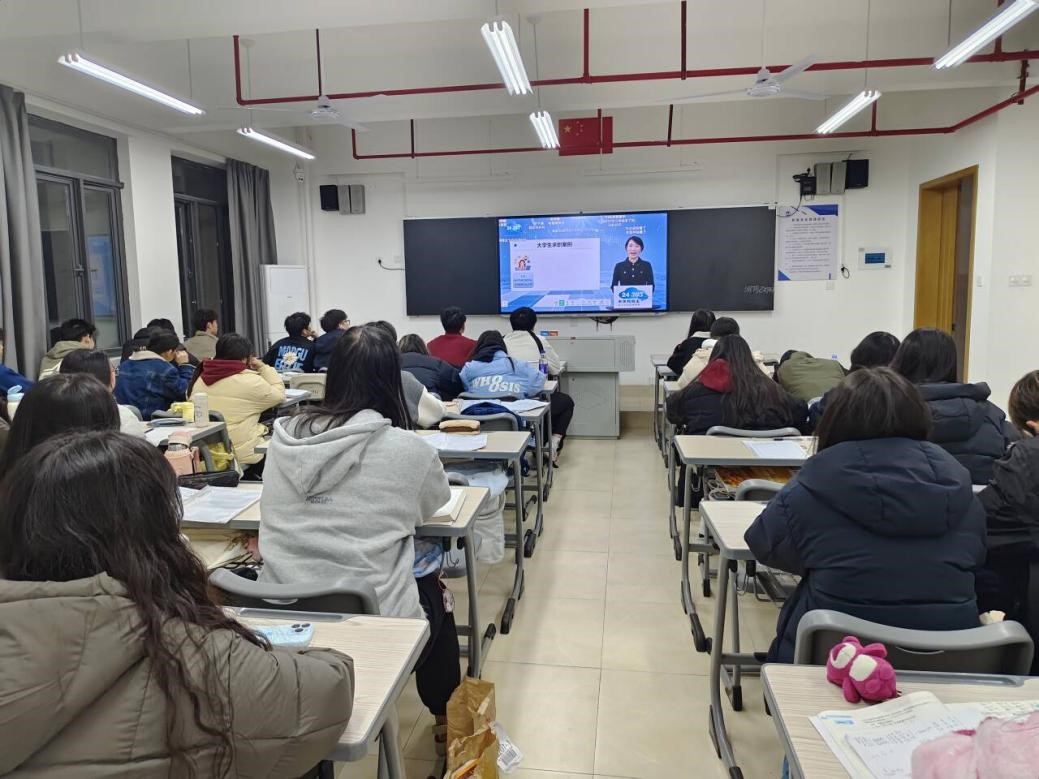 2025年3月9日best365中国官方网站2024级食科专业员工在医教楼603场地观看教育部“互联网+就业指导”公益直播课——“找到专业机会点 透视目标路径图”