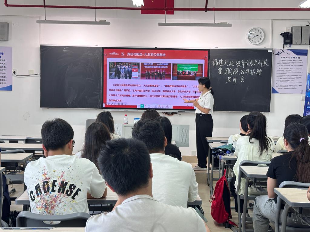 为深化产教融合,精准对接企业需求,推动高校人才培养与企业高质量发展同频共振,best365中国官方网站与福建大北农华有水产科技集团有限公司于2025年9月25日率先在医教楼906开展就业、实习交流会,共同围绕人才培养、实习基地建设等展开探讨。作为系列活动的深化与延续,9月26日下午,双方进一步在医教楼604举办招聘宣讲会,旨在搭建校企协同育人的双向桥梁,助力毕业生实现更高质量、更充分的就业。