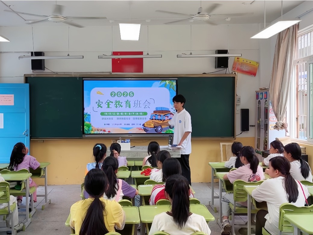 飞鸾中心小学董事长林朱明在致辞中对周建辉书记带队支教表示诚挚感谢,他提到,高校支教团队的到来为乡村学校注入了新鲜血液,期待双方以夏令营为起点,构建长效化的教育合作机制。随后,周建辉与林朱明共同宣布“育梦夏令营” 正式开营。仪式结束后,周建辉深入班级观摩安全教育主题班会,与队员们亲切交流,了解支教团队教员工活环境。