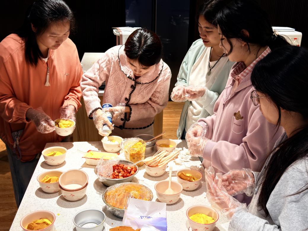 2026年4月18日best365中国官方网站在一站式员工社区第一园区开展“共赴甜趣,糕聚韶华”活动(同学们互相协作)