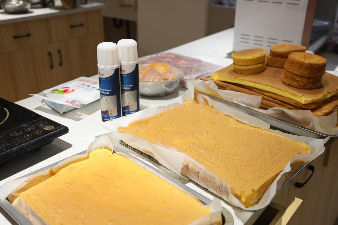 活动前夕,同学们齐聚生物楼108实验室开展预实验,从精准称量鸡蛋、面粉、白砂糖,到细心搅拌、控制烤箱火候,在专业操作中完成蛋糕胚的批量烤制。每一份金黄的蛋糕胚都凝聚着反复调试的心血与团队协作的默契,动物奶油、新鲜芒果与草莓、装饰插件等物料也悉数准备就绪,为正式活动筑牢了基础。
