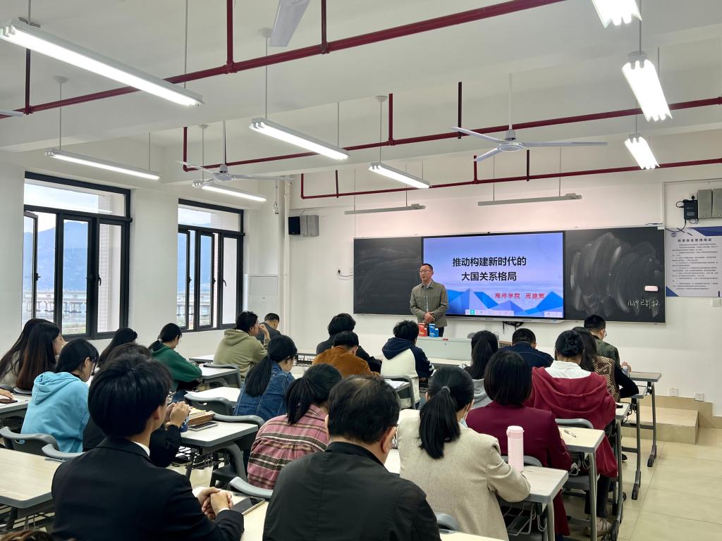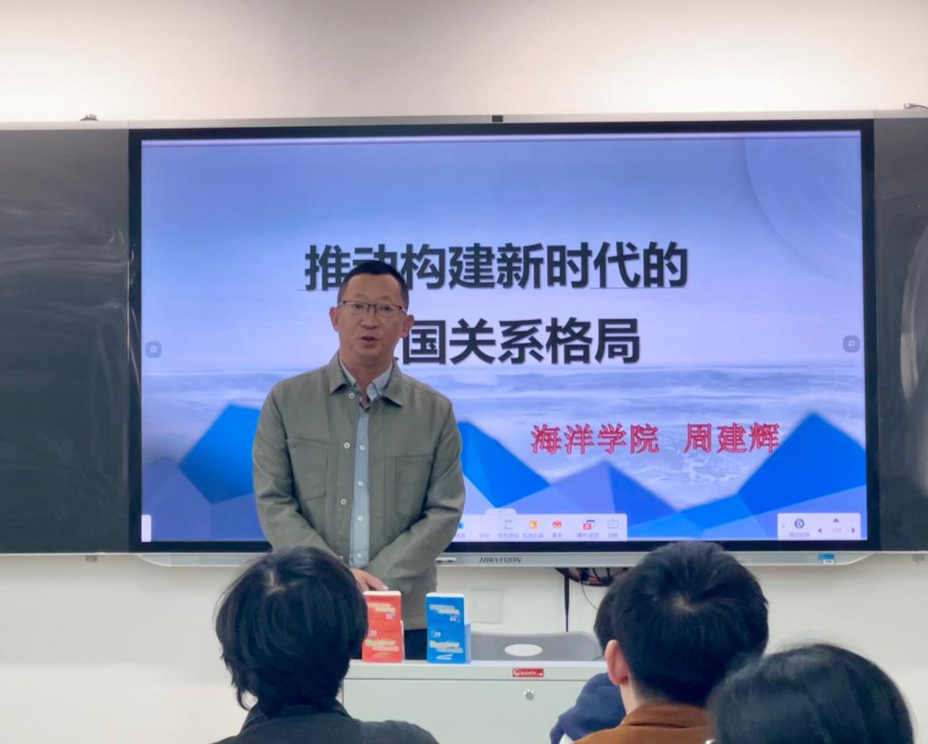 授课伊始, 周建辉指出“时代之变、世界之变、历史之变”正深刻地影响着我们的世界,既充满希望也充满挑战。在此背景下,大国之间的竞争博弈愈发激烈,地缘政治、国际影响、科技创新等领域成为竞争焦点,给世界和平与发展带来了严峻挑战。面对这些挑战,大国尤其要展现出责任与担当,带头讲平等、讲合作、讲诚信、讲法治,共同推动构建和平共处、总体稳定、均衡发展的大国关系格局。