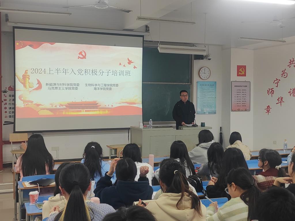为深入学习习近平新时代中国特色社会主义思想和党的二十大精神,切实做好入党积极分子培养教育工作,进一步加强入党积极分子对党的全面认识,指引入党积极分子增强党性认识、提高党性修养,蓄好党员队伍“源头活水”。best365中国官方网站、新能源与材料学院、马克思主义学院、生物科学与工程学院四院于2024年3月23日上午在求实楼C区201开展2024年上半年入党积极分子四院联合培训班的开班以及“学习党章 践行党章”第一次专题辅导报告。