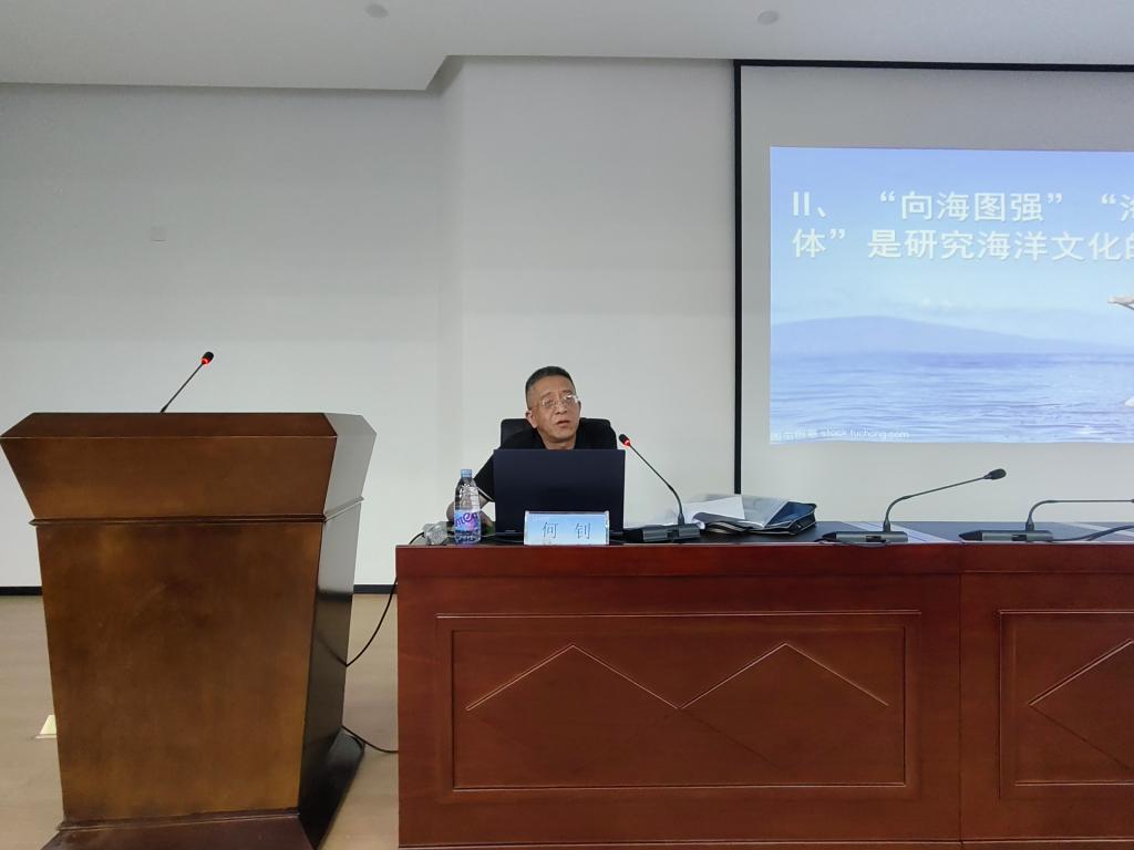 讲座伊始,公司党委书记周建辉致欢迎词。他强调挖掘地方海洋文化对增强文化自信、培育员工家国情怀的重要意义,并对何钊教授的到来表示欢迎。随后,何钊主任围绕“文明对话中的海洋认知”这一主题,系统阐述了中西方在航海实践与海洋观念上的异同,剖析不同文明对海洋功能的理解差异。他结合明代海禁政策的历史背景,分析了传统社会“重农抑商”观念如何导致海洋从“生存通道”逐渐演变为“安全屏障”的认知转变。