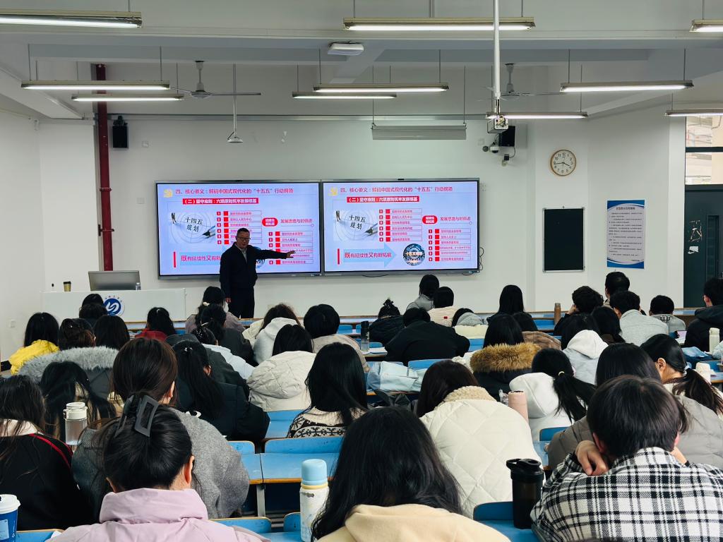 围绕全会精神,周建辉深入解读了“十五五”时期我国发展的战略机遇与风险挑战,并重点阐释了中国式现代化行动纲领的六项原则。他引用习近平总书记“既不平滑,也不容易”的判断,勉励学子保持战略定力、做好艰苦奋斗准备。报告最后,周建辉引用恩格斯关于政党奋斗精神的经典论述,强调中国共产党正是凭借明确目标与顽强精神不断迈向胜利。